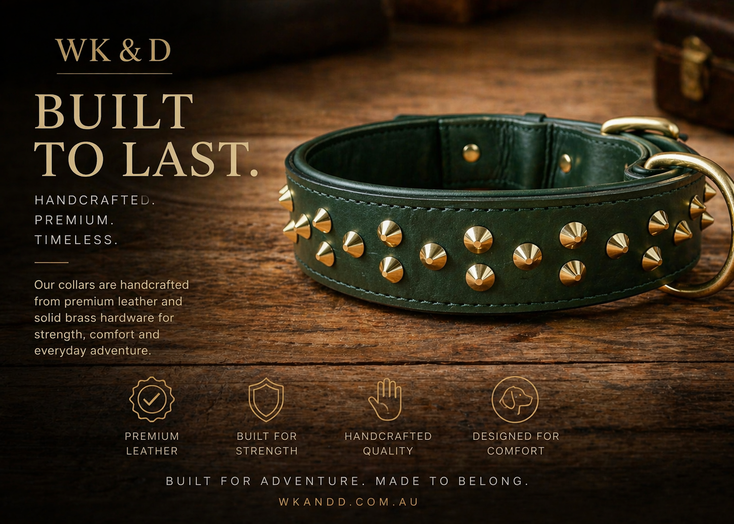 Premium full-grain leather, solid brass hardware, and handcrafted right here in Victoria.