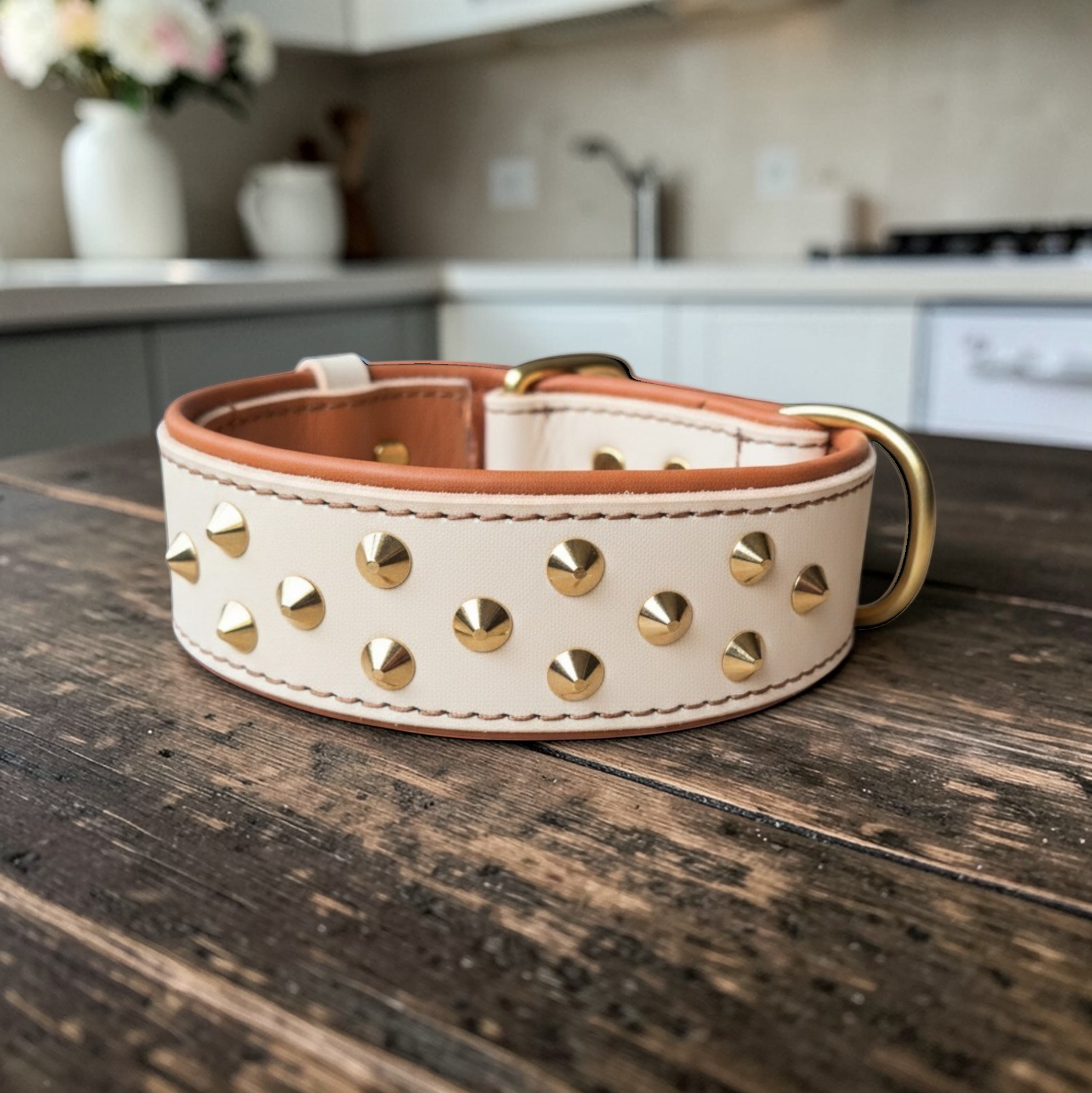 Kylie made us some gorgeous rolled leather collars for our double coated pups. Great quality, beautiful stitching and I love the gold buckles and details, as most collars feature silver instead! Thank you Kylie!
