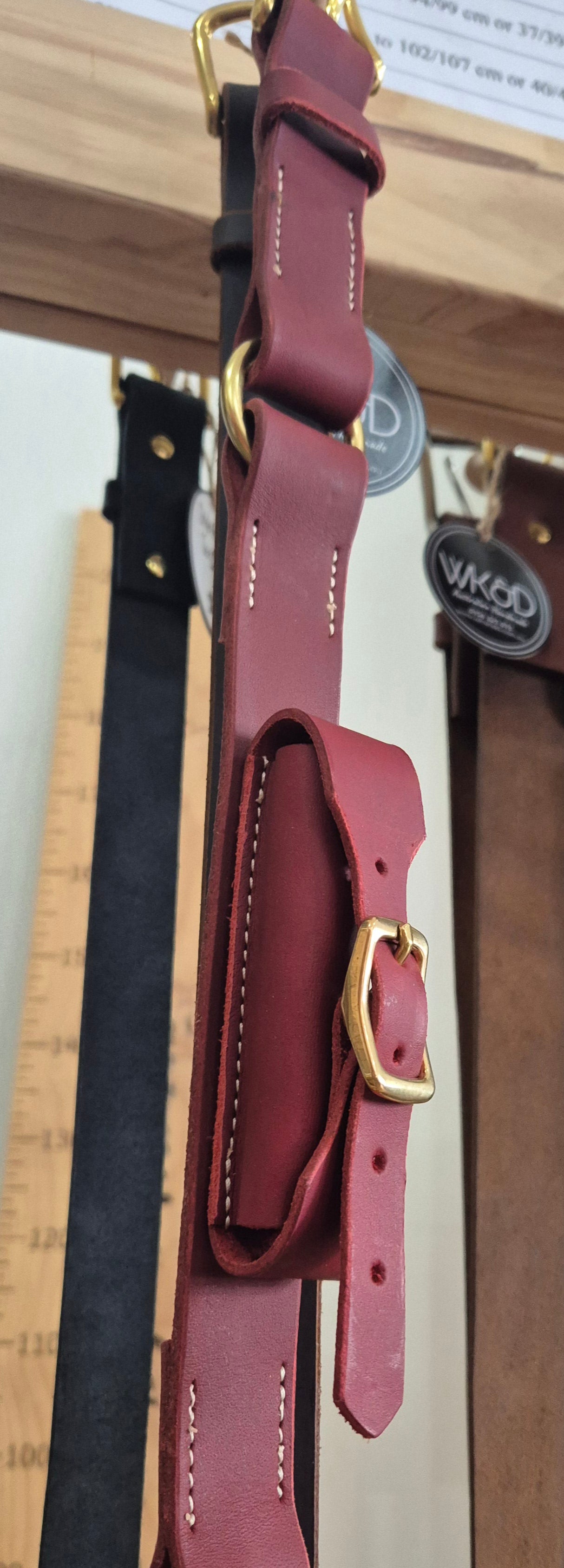 "Get ready to strut your stuff in the paddock with these custom made Knife Hobble belts! Crafted from 100% Australian leather in earthy tones, these belts are not only stylish but also durable. With solid brass or stainless steel hardware, they fit multiple knife lengths from 10cm to 14cm. With the option for personalization, it's the ultimate gift for any worker. Hand cut and conditioned, these belts are one-of-a-kind and made to last. Available in 3cm & 3.8cm widths, they're the perfect addition to any outfit. Order yours now!"