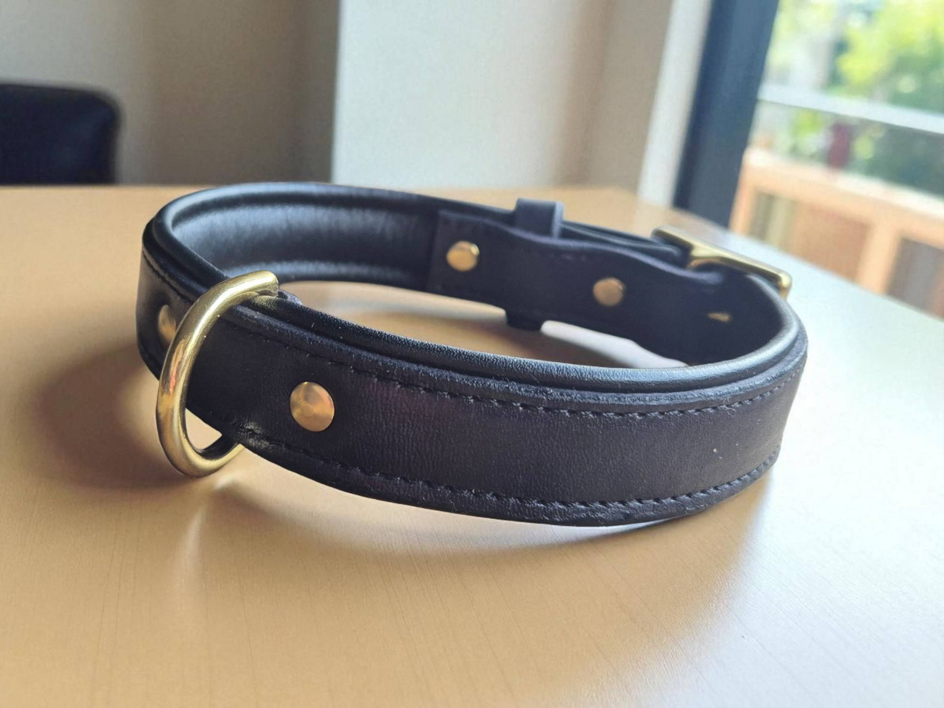 Traditional stitched style leather collars with middle d ring